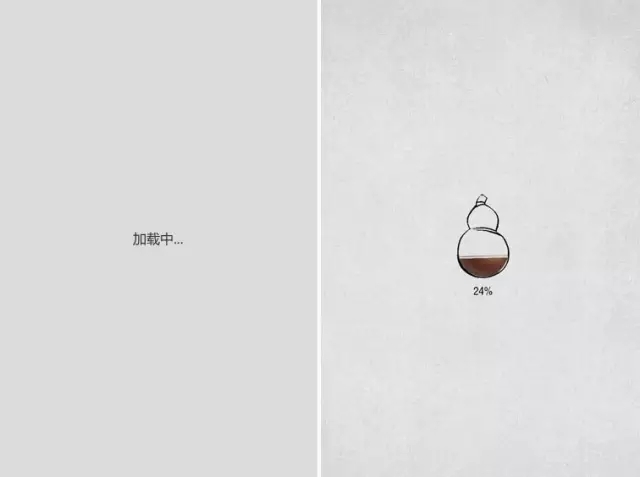 這里有兩個loading頁面,第一個頁面只給出“加載中”三個字,然后不停的閃。對于這種加載無疑是令人抓狂的,既不知道會等待多久,也無法想象迎接等待的是什么鬼…相比之下,第二個頁面的形式就要好很多,用戶可以很清楚地知道當葫蘆加載滿頁面即可打開,下方的數字也交代了當前的進度,而且通過宣紙和葫蘆的形象也多多少少給用戶帶來了一些關于頁面的信息。