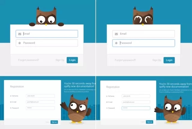 在Readme的登陸頁面上,當你輸入密碼時,上面萌萌的貓頭鷹會遮住自己的眼睛,在輸入密碼的過程中給用戶傳遞了安全感。在注冊時,貓頭鷹的手和眼睛還會一同指向你所選中的輸入框,呆萌的形象給本身枯燥乏味的登錄注冊界面增添了一絲趣味,從而也減少了用戶在登錄注冊時的負面情緒。